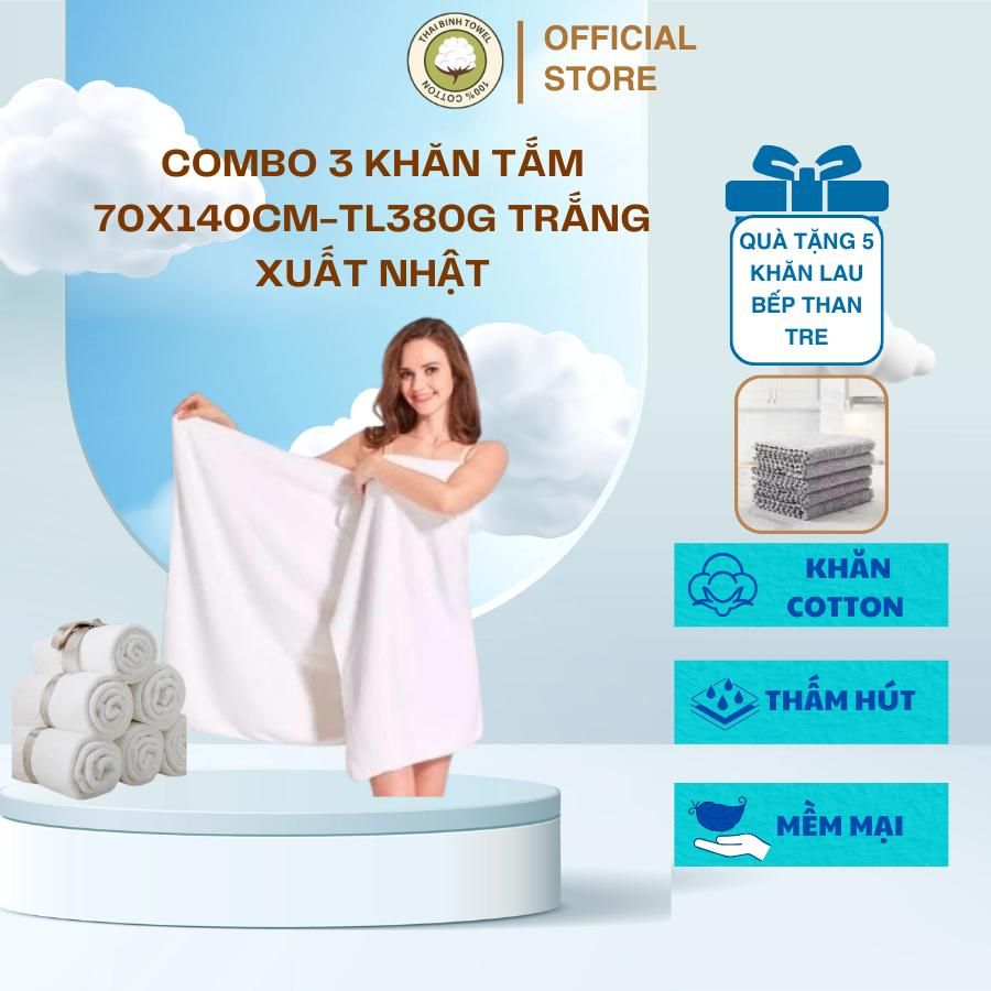Combo 3 Khăn Tắm Khách Sạn Cỡ To xuất Nhật 70X140CM -380g THAI BINH TOWEL Cotton 100% Mềm Mại Siêu Thấm Hút Không Xù Bông Nhà Tắm khăn tang trắng khăn tắm