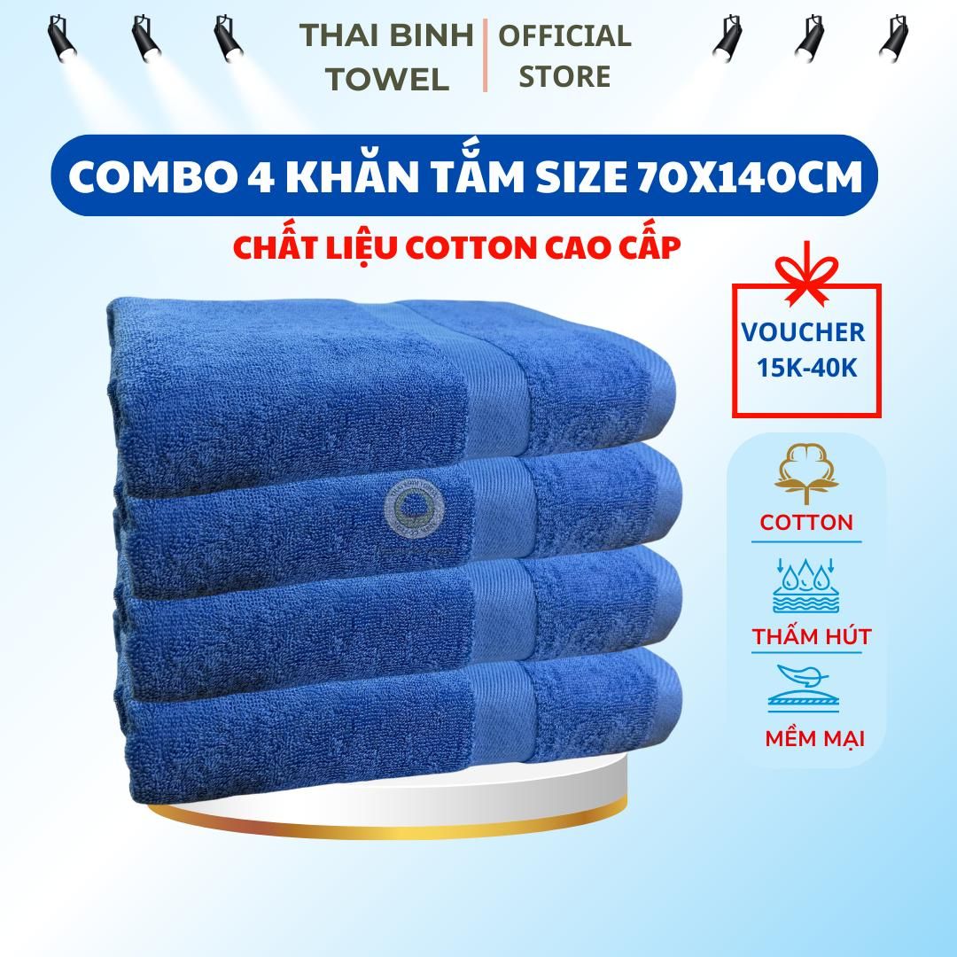 Combo 4 Khăn Tắm Cỡ Đại 70x140cm Thai Binh Towel 100% Cotton Siêu Thấm Hút Nhà Tắm khăn gia dinh khăn tắm
