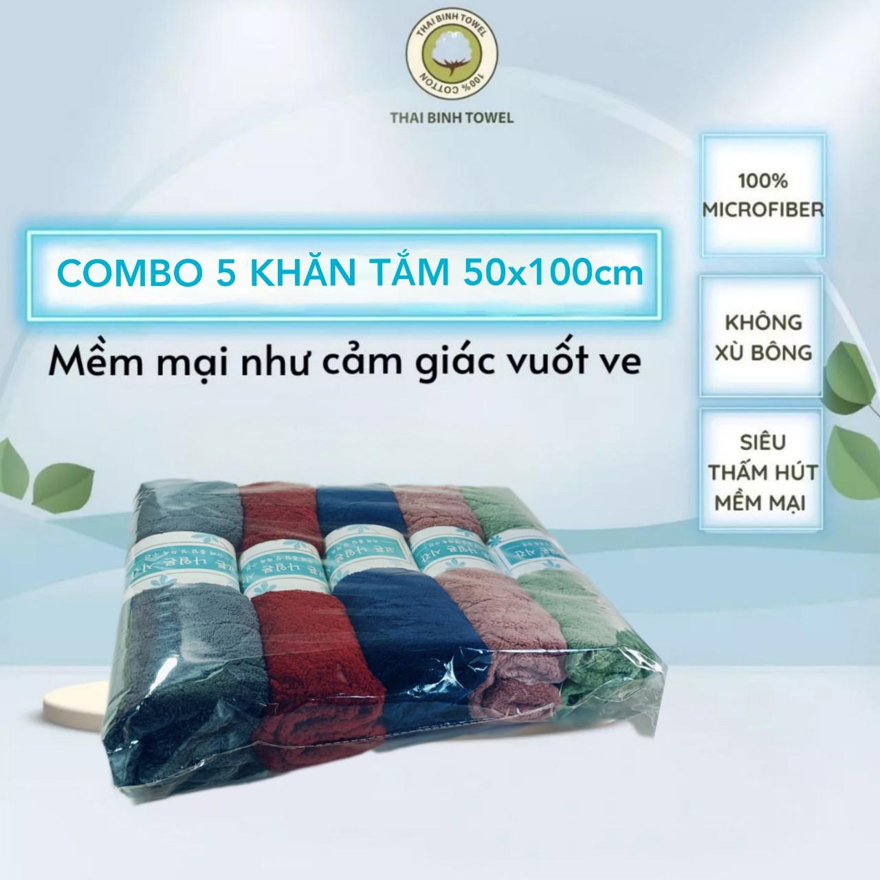 Combo 5 khăn tắm lông cừu sọc xương cá 100*50cm Thai Binh Towel, siêu mềm siêu thấm hút, 5 màu khác nhau Nhà Tắm khantam 50x100 khan tam khan long khăn tắm