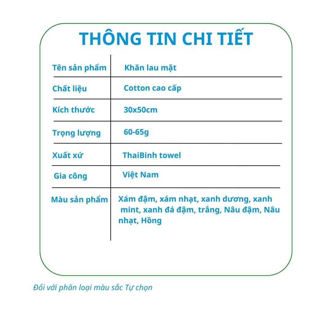 Khăn lau mặt 30x50cm Thai Binh Towel làm từ sợi Cotton cao cấp Siêu Thấm Hút Nhà Tắm khăn gia dinh khăn tắm khach san