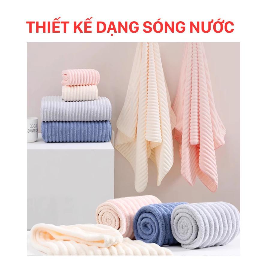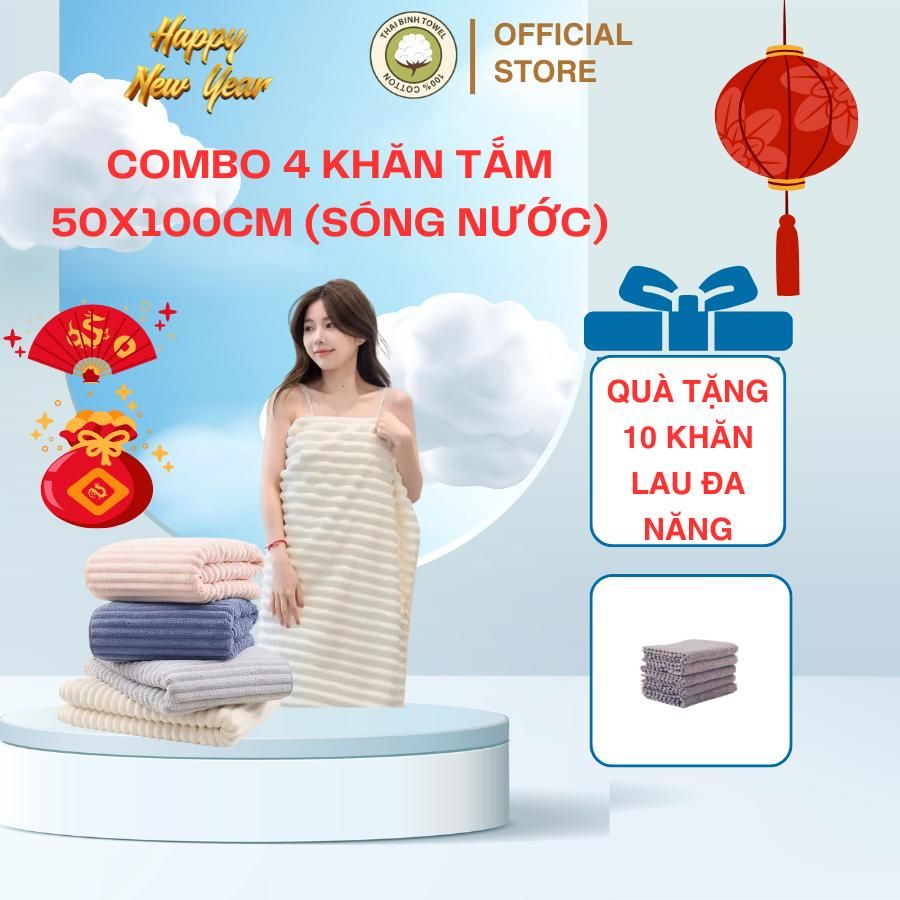 (Mua 1 tặng 10 khăn lau bếp) Bộ 4 khăn tắm sóng nước 50x100cm cao cấp THAI BINH TOWEL làm từ sợi Microfiber siêu mềm mịn, thấm hút nước Nhà Tắm - khanlongcuu khăn gia dinh khan long cuu